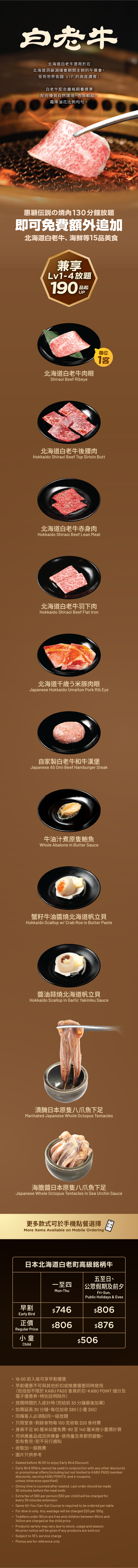北海道白老牛放題餐目 │ Hokkaido Shiraoi Beef All-you-can-eat Menu